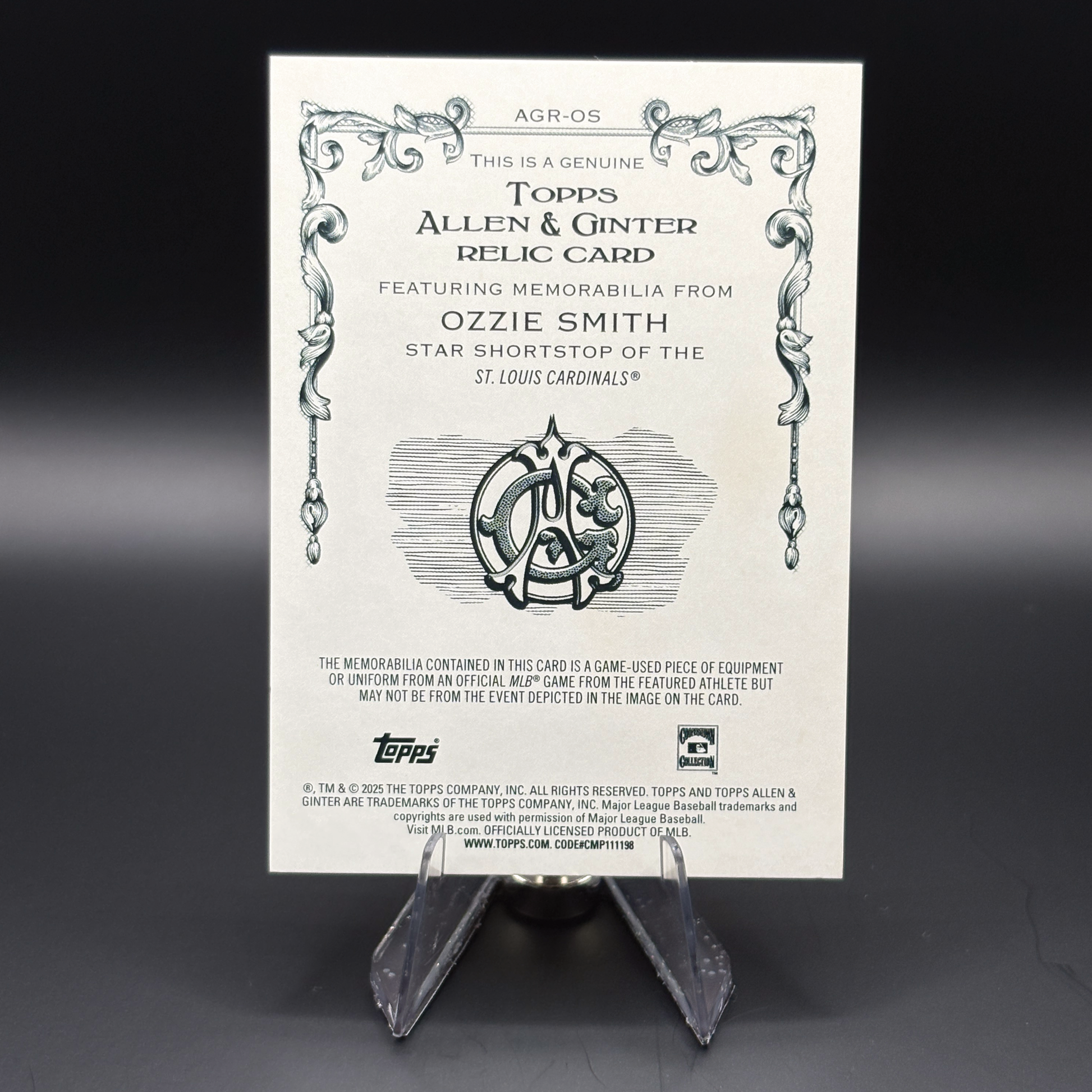 Ozzie Smith (Orange Foil 11/25) - 2025 Topps Allen and Ginter Relic #AGR-OS